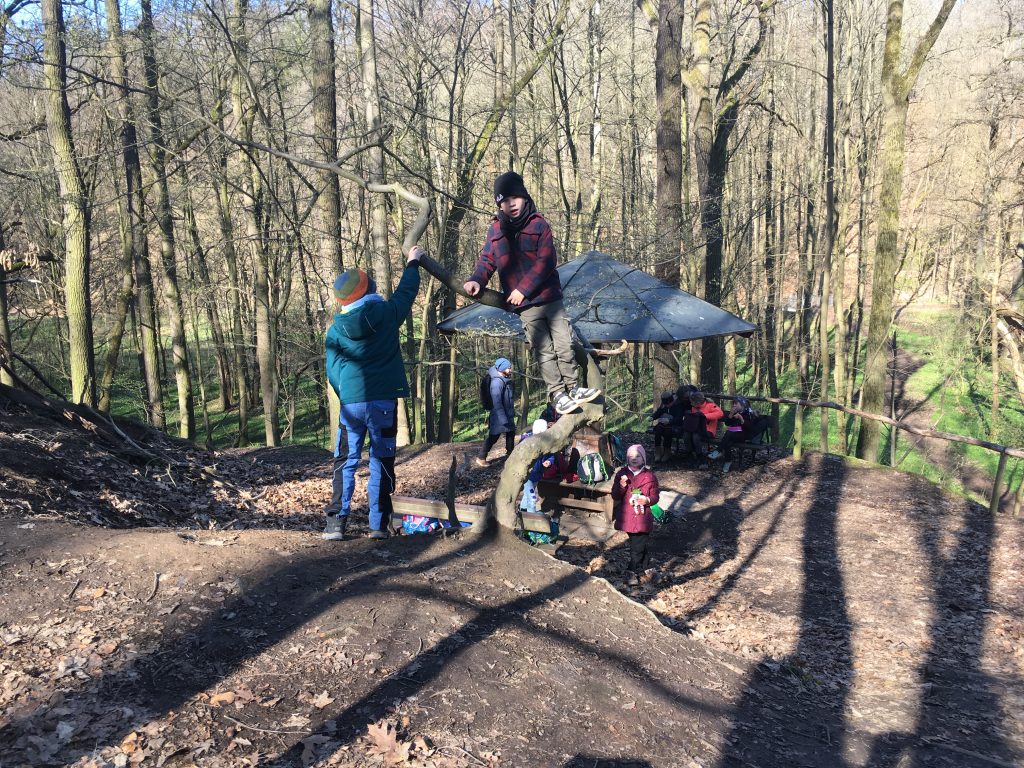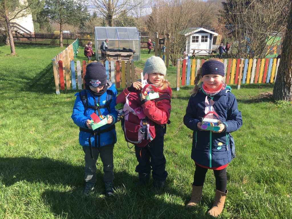 Am Mittwoch vor den Osterferien begab sich die Klasse 1b mit Frau Köhler und Frau Löschner auf eine österliche Schatzsuche. In kleinen Gruppen musste immer ein Foto von dem Ort zusammengepuzzelt werden, zu dem wir als nächstes gehen sollten. Durch Teamwork und ortskundige Wandersleute in unserer Klasse fanden wir die gesuchten Plätze ohne Probleme. Dort angekommen gab es das nächste Fotopuzzle und so führte uns der Weg bei schönstem Sonnenschein durch das Lützeltal. An manchen Stellen, wie zum Beispiel am Lützelbach oder am „Pilz“, machten wir kleine Spiel- und Essenspausen. Schließlich führten uns die Puzzles zu unserem Schulgarten, wo Frau Hesse kurz vorher den Osterhasen gesehen hat. Alle haben deshalb fleißig die Büsche, Gewächshäuser, Bänke und Gartenhäuschen abgesucht und wurden natürlich auch fündig: eine kleine Leckerei, etwas zu lesen und etwas zu spielen entdecken wir in unseren selbst gestalteten Osternestchen. Dieser schöne gemeinsame Tag leutete die wohl verdienten Osterferien ein.