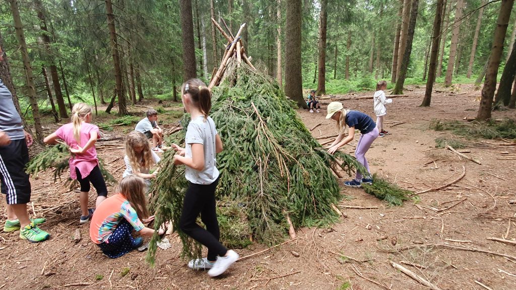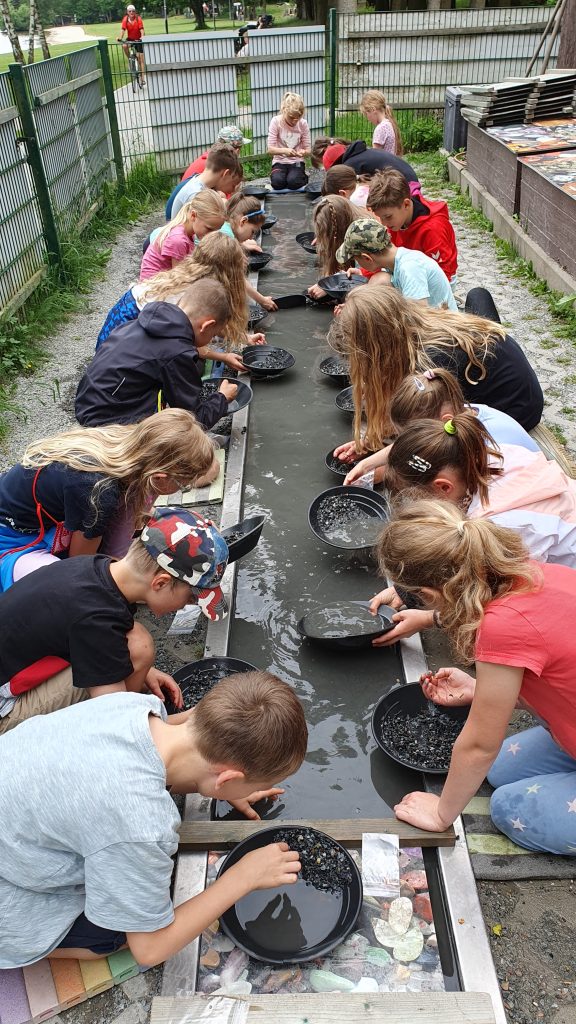 Der zweite Tag begann mit einer Edelsteinwäsche in „Tonis Haus der Steine“. Viele bunte Steine wurden aus dem Kiesbett gewaschen und im Anschluss bestimmt. Eindeutig das Highlight der ganzen Jugendherbergsfahrt. Am Nachmittag ging es zum Hüttenbau in den Wald. Ziel war es eine Hütte aus den Materialien zu bauen, die der Wald zur Verfügung stellt. Mit vereinten Kräften entstanden stabile Hütten, welche eine ganze Klasse fassen konnten. An diesem Tag blieb viel Zeit für Fußball- und Tischtennisspielen, zum Malen, quatschen und lesen.