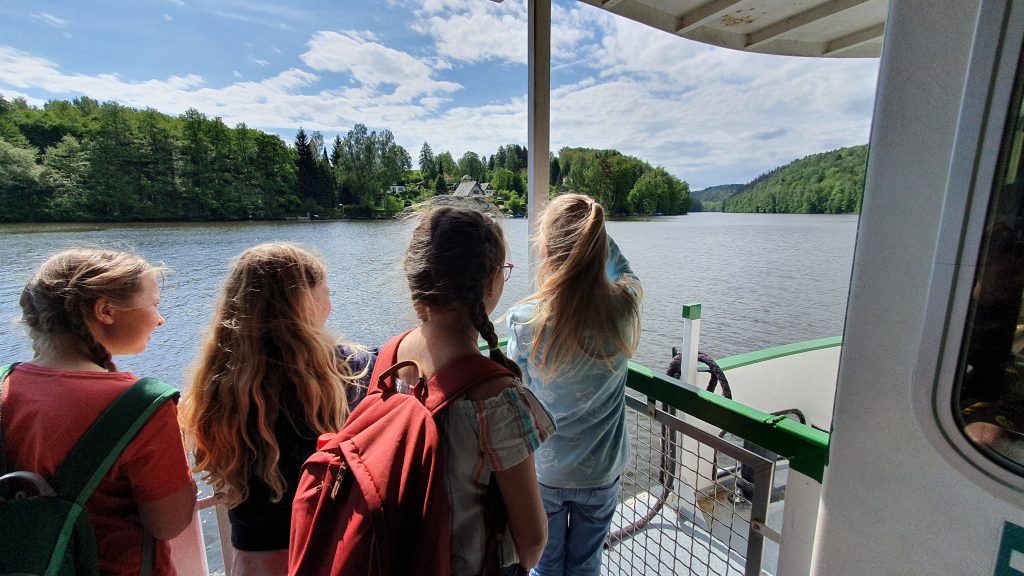 Wir, die Klasse 4a, besuchten vom 15. bis 17. Mai 2024 die Jugendherberge Falkenhain an der Talsperre Kriebstein. Wir übernachteten in kleinen, gemütlichen Bungalows. Nach unserer Ankunft wanderten wir zu der Burg Kriebstein. Für den Rückweg nahmen wir die Fähre. Als der Ausflug zu Ende war, richteten wir unsere Zimmer ein. Den restlichen Mittwoch nutzen wir zum Spielen und Spaß haben.