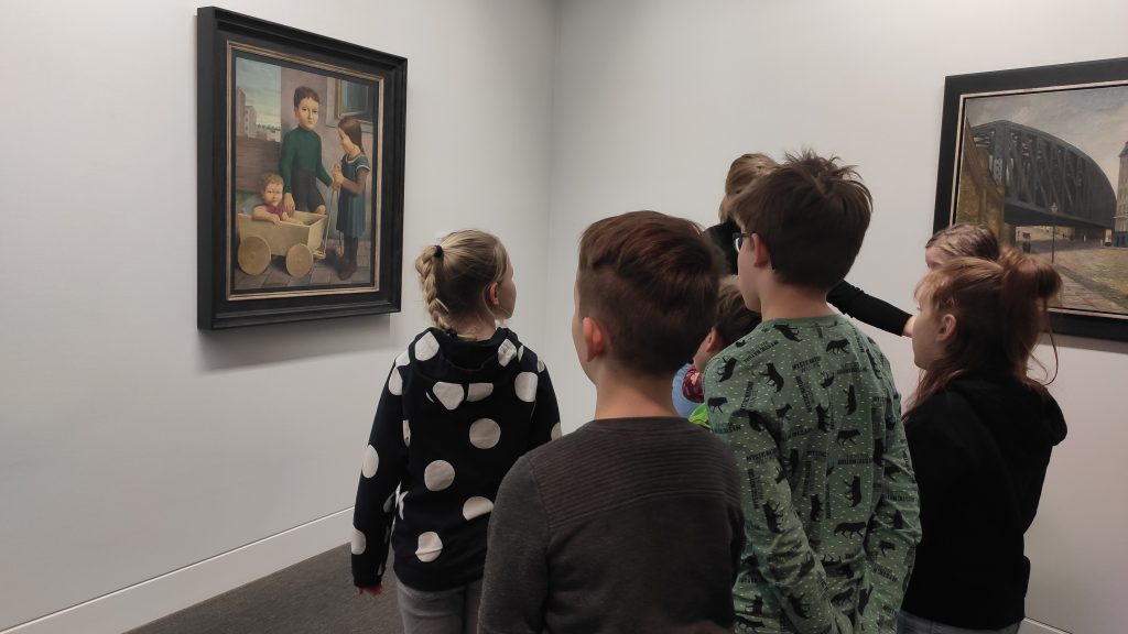 Am 01.03.2024 unternahmen wir, die Klasse 3b, einen kreativen Ausflug in das Museum Gunzenhauser. Nachdem wir vom bunten Kunst-Bus „Konrad“ an der Schule abgeholt wurden, fuhren wir nach Chemnitz zum Museum. In zwei Gruppen beschäftigten wir uns mit dem Thema „Kinder vor 100 Jahren“. Unter der Anleitung zweier Künstlerinnen erkundeten wir dabei das Museum. Wir schauten uns verschiedene Gemälde an und untersuchten, wie die Kinder vor 100 Jahren aussahen, was sie gern spielten und wie sie ihr Leben verbrachten. Dabei konnten wir viele Unterschiede zu unserem heutigen Leben feststellen. Die alten Gemälde waren sehr beeindruckend und wir erfuhren einige spannende Informationen zu den Künstlern. Besonders schön war, dass wir uns im Atelier des Museums selbst ausprobieren konnten. Mit Ölpastellkreiden gestalteten wir unsere eigene Vorstellung von Kindern vor 100 Jahren. Schade, dass diese tolle Kunstexkursion so schnell vorbei war – wir hätten gern noch mehr Zeit im Museum verbracht.