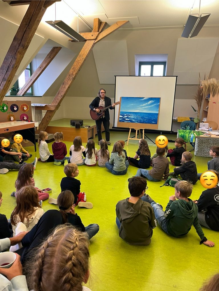 Pfarrer Seltmann hielt gemeinsam mit den Kindern die Andacht und spielte uns auf der Gitarre vor. Danach ging es auch schon an die Vorbereitungen unseres Theaterstückes. Das Stück erzählte die bekannte biblische Geschichte von Noah und der Arche. Eine Woche lang beschäftigten sich die Kinder und die Erzieher mit dem Thema. Im täglichen Morgenkreis und am Vormittag wurde die Geschichte vorgelesen: Gott beauftragte Noah, eine große Arche zu  bauen, um Mensch und Tier vor der großen Flut zu retten. Die Kinder teilten sich in verschiedene Gruppen. Es gab eine Kulissengruppe, eine Requisitengruppe und eine Theatergruppe. Gemeinsam Probten wir und führten am Donnerstag unser Stück auf. Eingeladen waren alle die das Stück sehen wollten. Das aufgeführte Theaterstück hat gezeigt, dass Glaube und Hoffnung selbst in stürmischen Zeiten tragen können-so wie Noah einst auf Gottes Zusage vertraute.