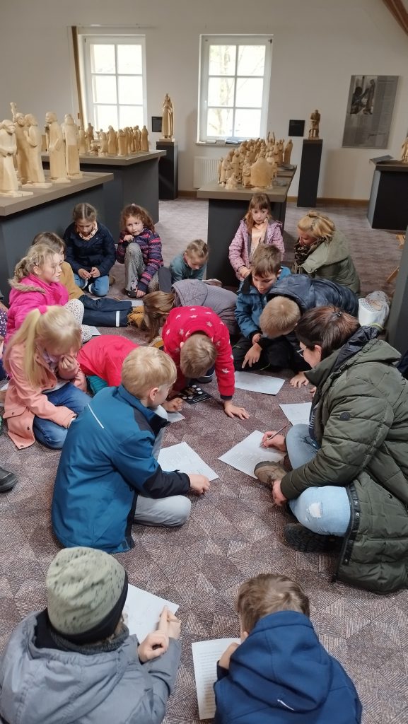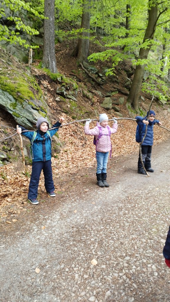 Vom 17.04.-19.04.2024 fuhr die Klasse 2a in die Hüttstattmühle nach Marienberg/OT Ansprung. Nachdem das milde Wetter der vorangegangenen Tage vorbei war, mussten wir uns nun auf Schneeregen und Kälte im Erzgebirge einstellen. So reisten wir auch alle mit großem Gepäck. Nach dem Bezug der Zimmer und einem stärkenden Mittagessen wanderten wir zur Galerie „Die Hütte“ nach Pobershau. Dort angekommen, schauten wir einen kurzen Film über das Leben und Wirken Gottfried Reichels bevor wir seine Schnitzausstellung „Die Holz-Bibel“ auf eigene Faust erkundeten. Mithilfe interessanter Rätselfragen festigten wir unser Wissen und lernten viele neue biblische Geschichten kennen. Im Anschluss wanderten wir wieder in die Hüttstattmühle. Der Abend klang bei Spiel, Eis und gemütlichem Beisammensein aus.