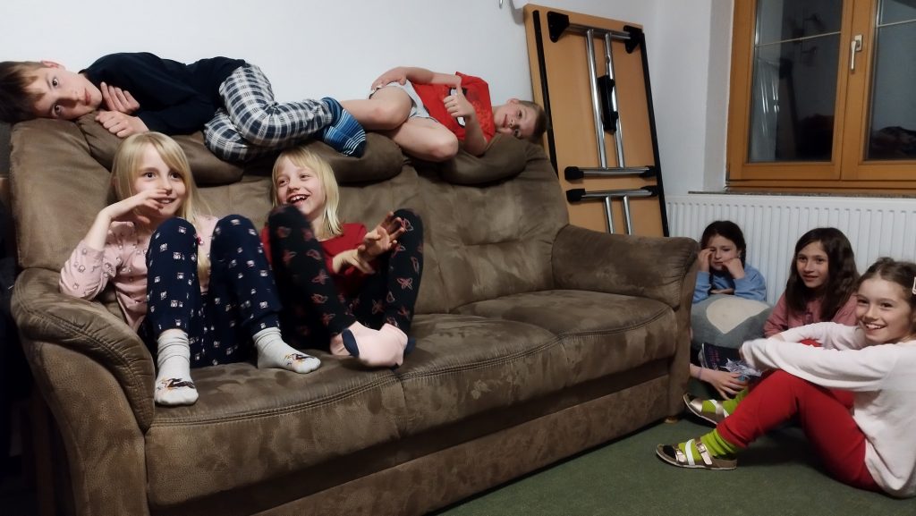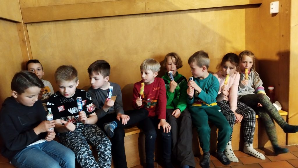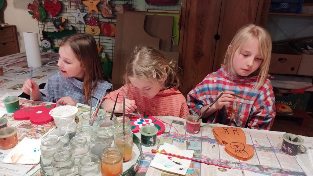 Am nächsten Tag wanderten wir abermals nach Pobershau und besuchten das Bergwerk „Tiefer Mollchner Stolln“. Nachdem wir uns bergmännisch gekleidet hatten, fuhren wir ein. Es war ziemlich eng und feucht im Schacht, aber unglaublich interessant. Überall glitzerte es und wir sahen zahlreiche Stalaktiten und Stalagmiten. Am Nachmittag besuchten wir das Spielzeugland „Stockhausen“. Hier konnten wir toben, kreativ sein oder basteln. Es war für jeden etwas dabei. Am Abend lasen, spielten und malten wir gemeinsam.